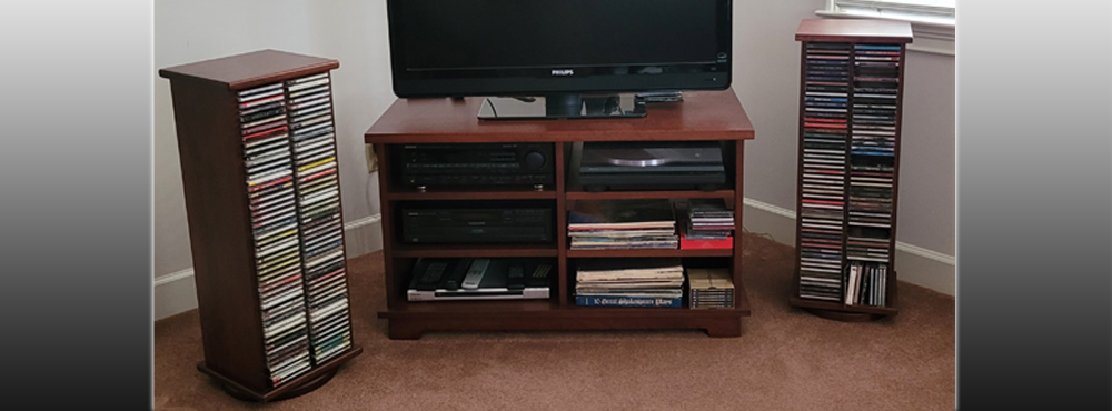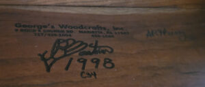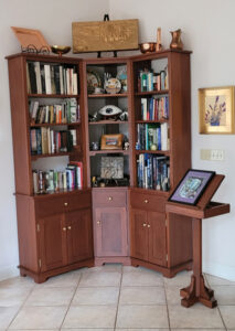 They were so impressed with their visit that they sent the dimensions of a podium designed to hold the family bible. That podium, a coffee table, corner bookshelf with book display, entertainment center, and 2 CD swivel stands, now reside in their home. All signed and dated by our craftsmen.